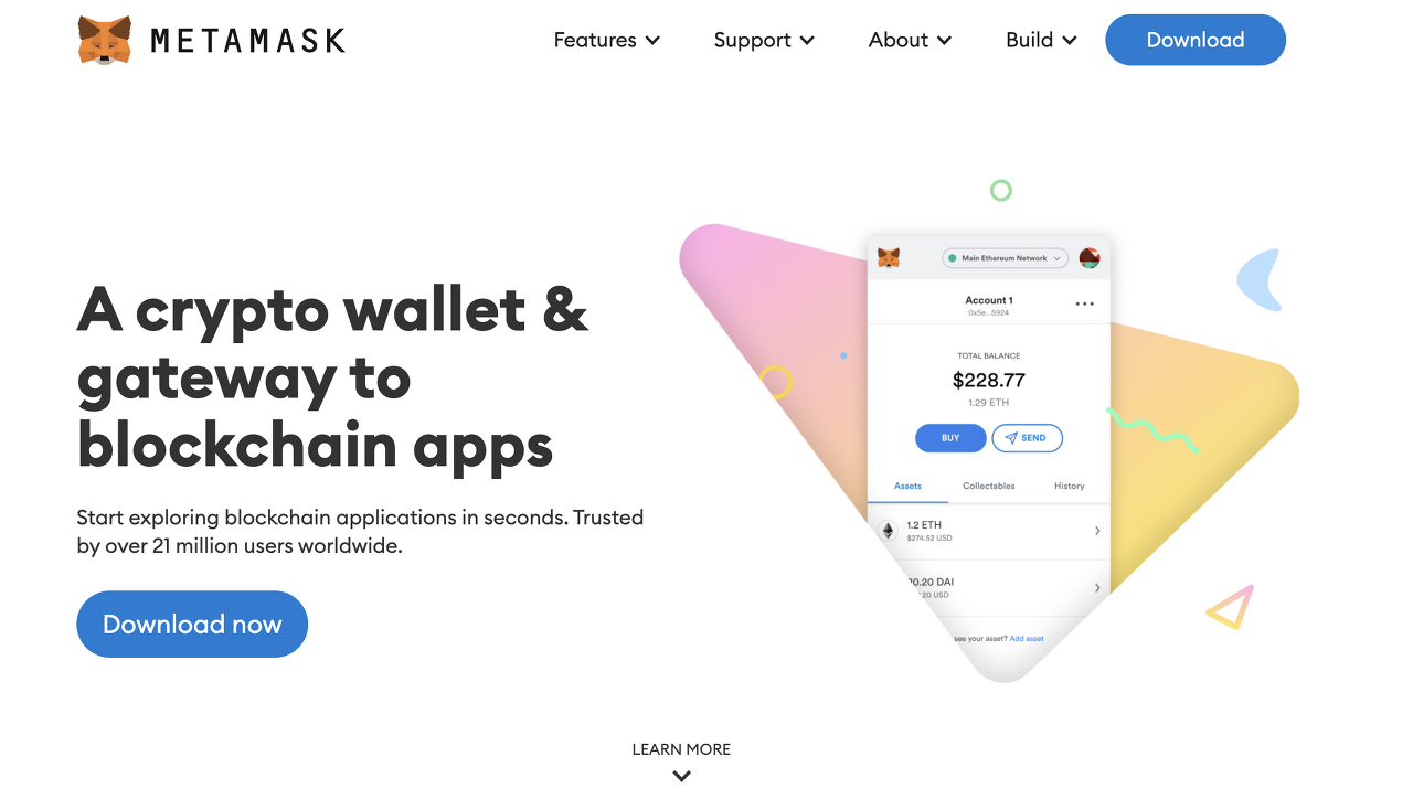 메타마스크를 통해 스마트 컨트랙트로 운용되는 디앱(탈중앙화 어플리케이션)과 상호작용할 수 있으며 거의 모든 디앱이 메타마스크를 지원합니다.