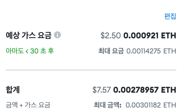 이때 전송하는 이더리움 외에 이더리움 전송을 위한 트랜잭션 가스요금(일종의 수수료)이 이더리움으로 지불됩니다.