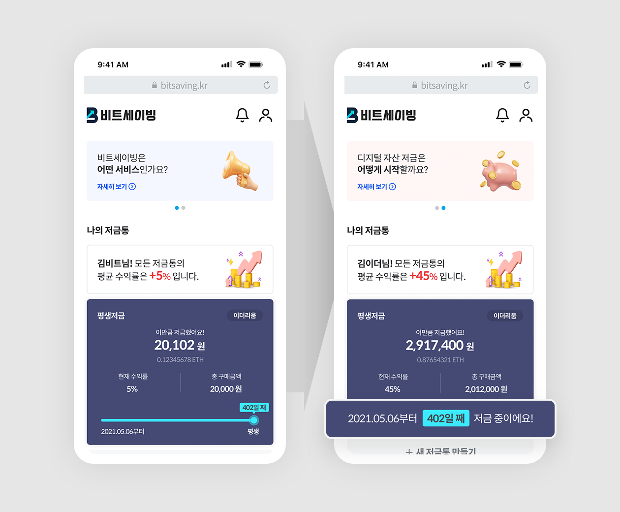 초장기 디지털 자산 저금을 목표로 하는 ‘평생’ 저금통을 대상으로 저금 일수 표시 방식이 업데이트 되었습니다.