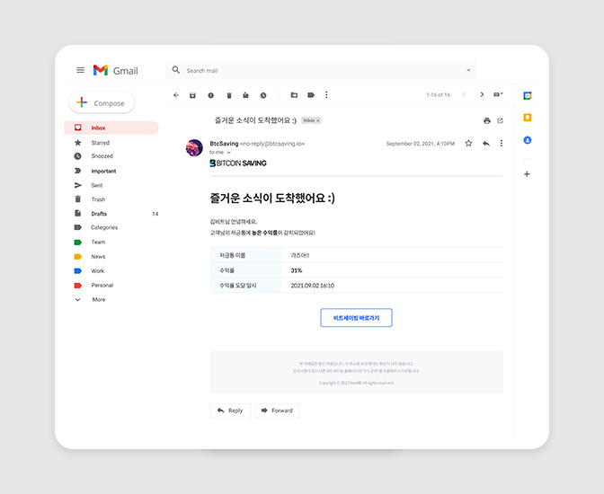이제는 정해진 수익률에 달성하면 이메일로 알림을 드려요!
